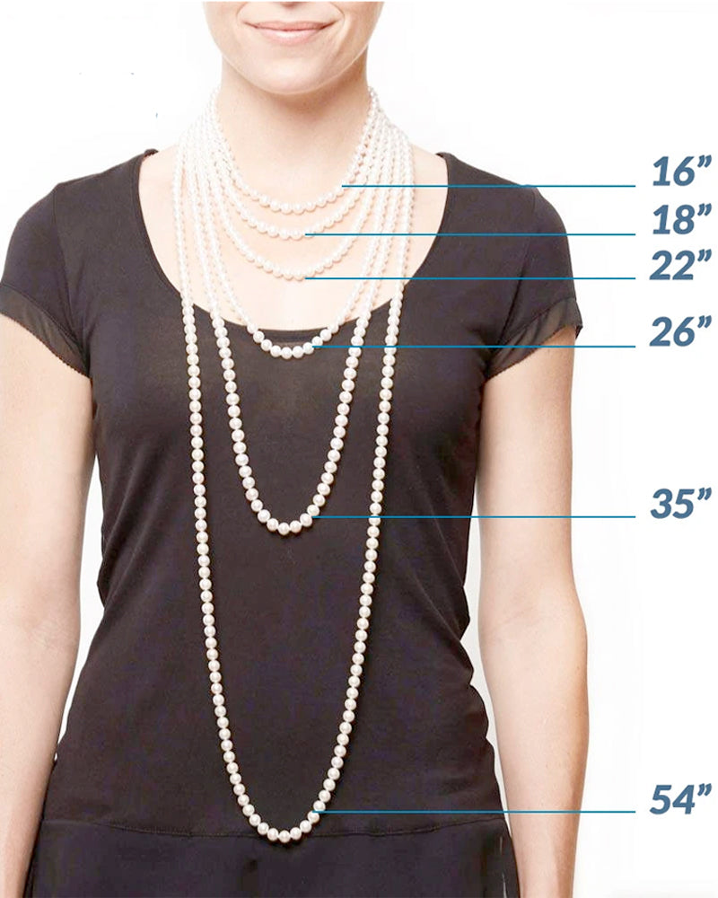 The most popular lengths are 16 inches and 18 inches. Strands as long as 35 inches and even 50 inches are also very popular because they can be worn long or doubled up.